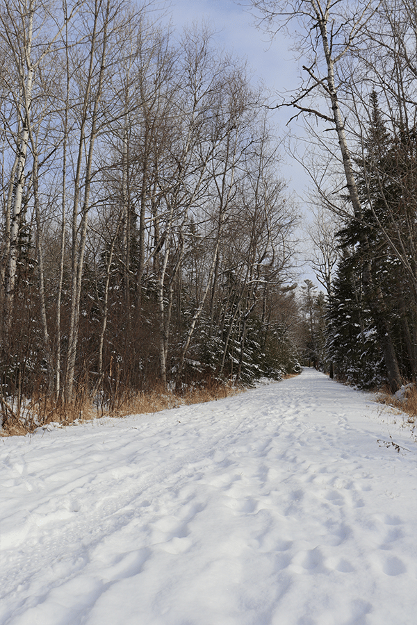 Wildlife remains active throughout the winter—look for tracks from deer, fox, and even moose, or pause to listen for the subtle sounds of birds moving through the trees.